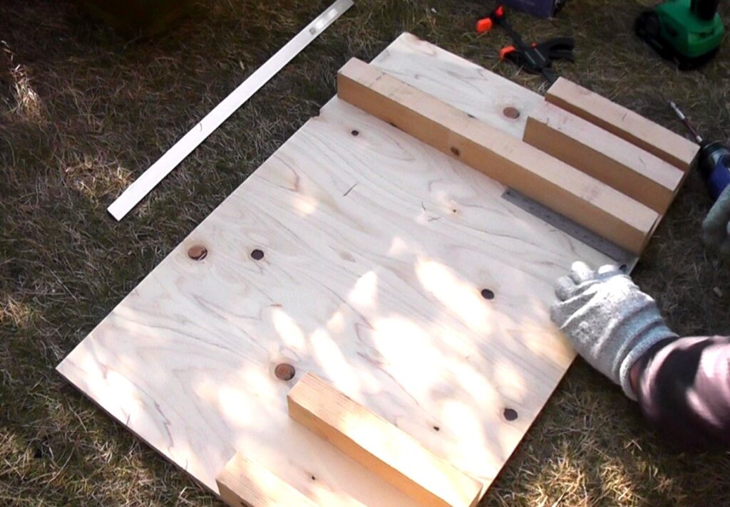 全ての材料がカットできたら、木材を板にネジ固定していきます。(裏面側からネジを打って固定します)