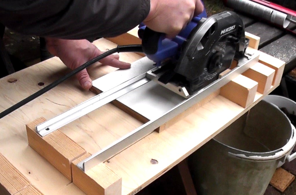 なお、ガイドレールには丸ノコを乗せた時に自重でたわまない材料を使用する必要があるので、厚みt=2.0mmなどのL字型アルミレールなどを使用する必要があります。