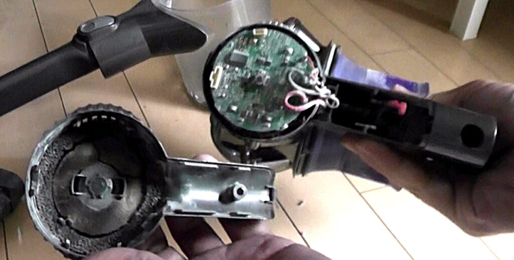 動作しなかったダイソンV6をバッテリー交換で動作できる状態に修理しました。これでしばらくは一安心ですが、折角の機会ですので、今まで分解したことがなかった部分まで分解して内部を清掃していきましょう。