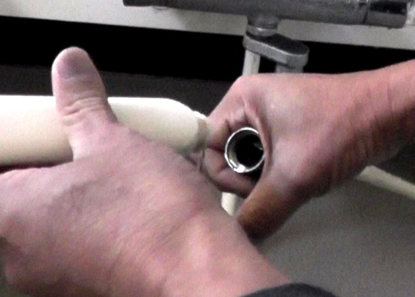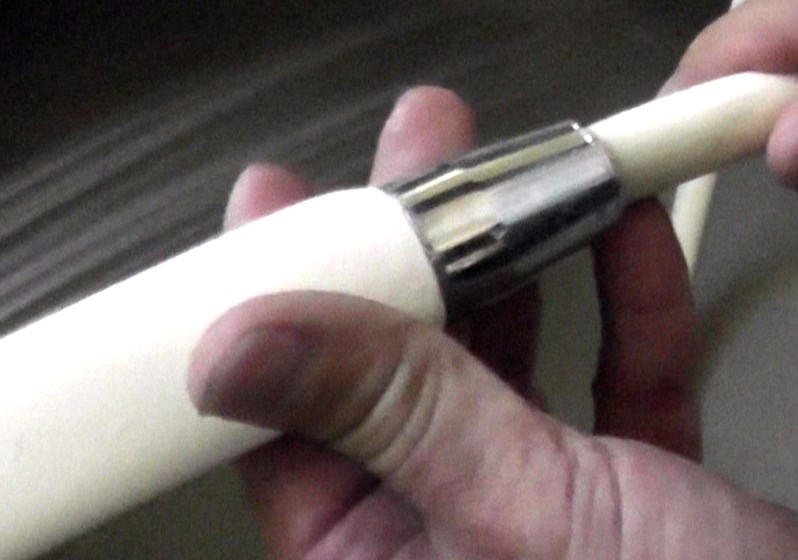 ホース先端に”固定金具”と”リング”を隙間なくしっかり固定することが出来たら、金具をその先端にセットして、位置決めとなるパッキンを嵌め込みます。